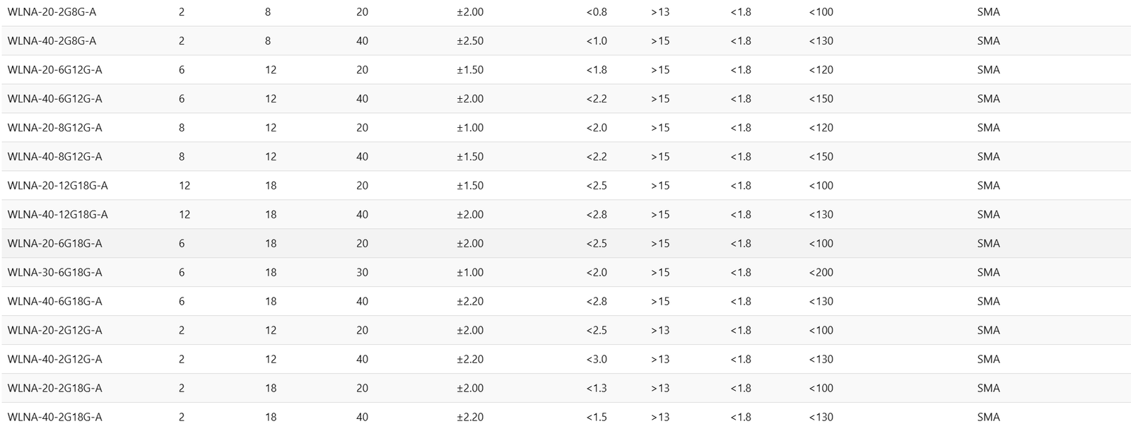 WLNA-20-8G12G-A81220±1.00<2.0>15<1.8<120SMA