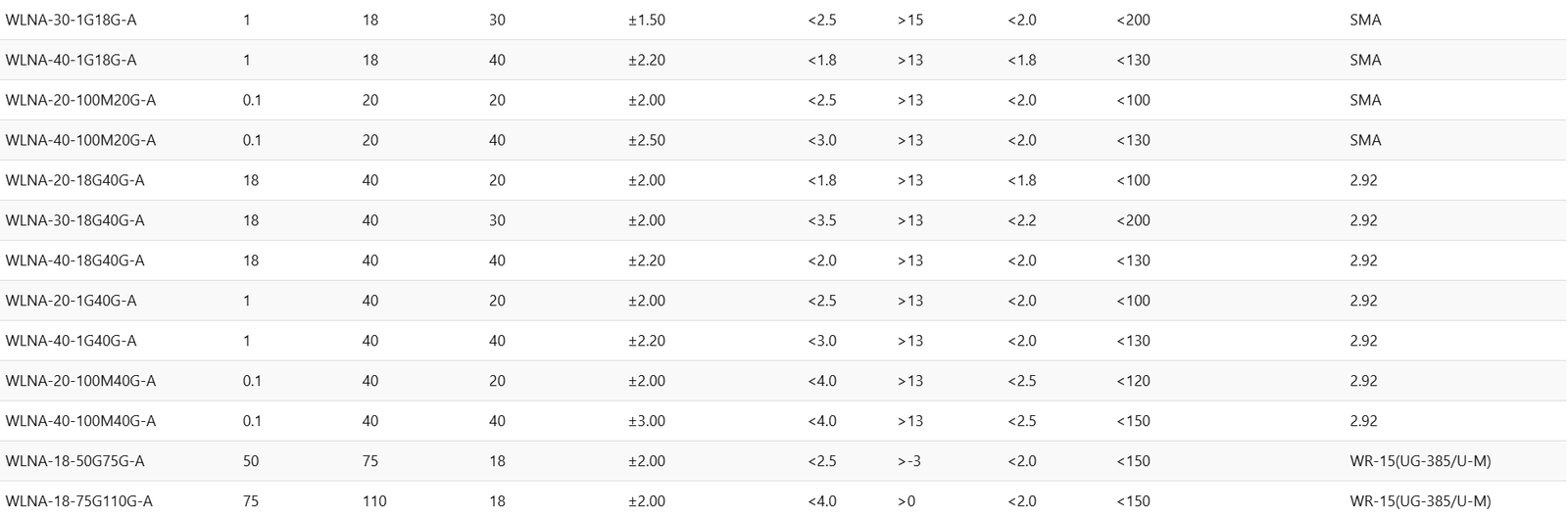 WLNA-40-2G8G-A2840±2.50<1.0>15<1.8<130SMA