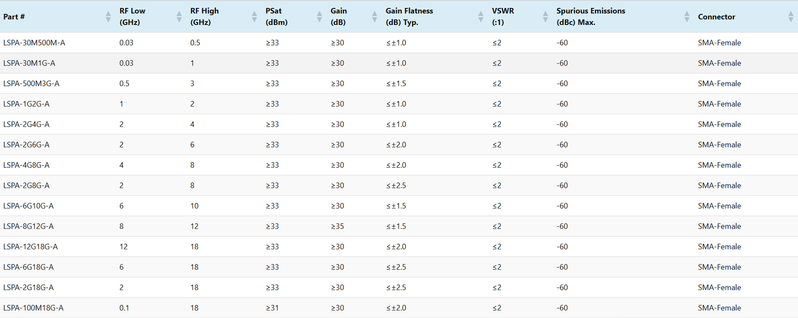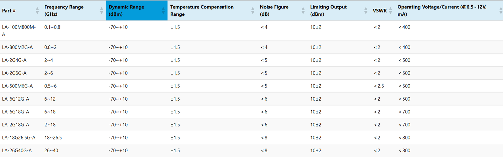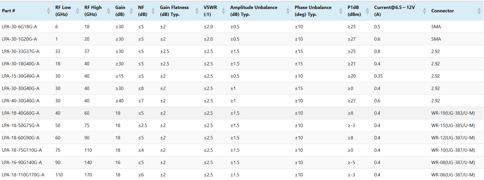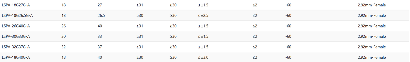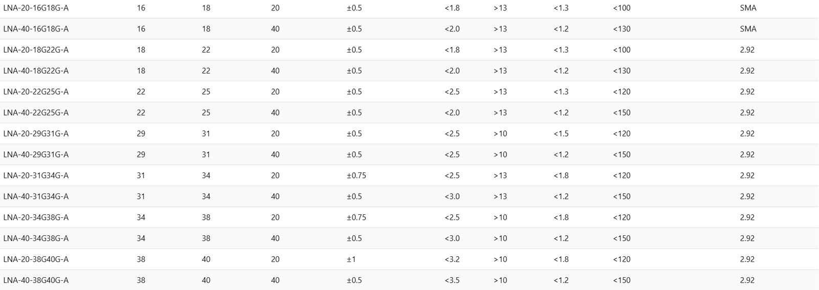 LNA-20-18G22G-A182220±0.5<1.8>13<1.3<1002.92