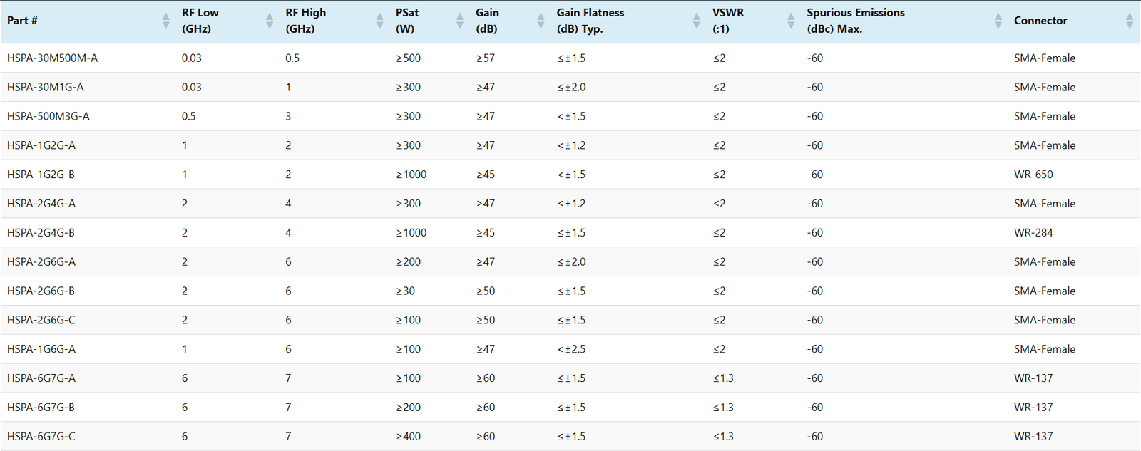 TDC1060N30HC1~6GHz≤250Watt≤2Watt≤1.30:1≤30±1.5dB≤±1.2dB≥12dB≤0.9dB (0.01dB)N-Female