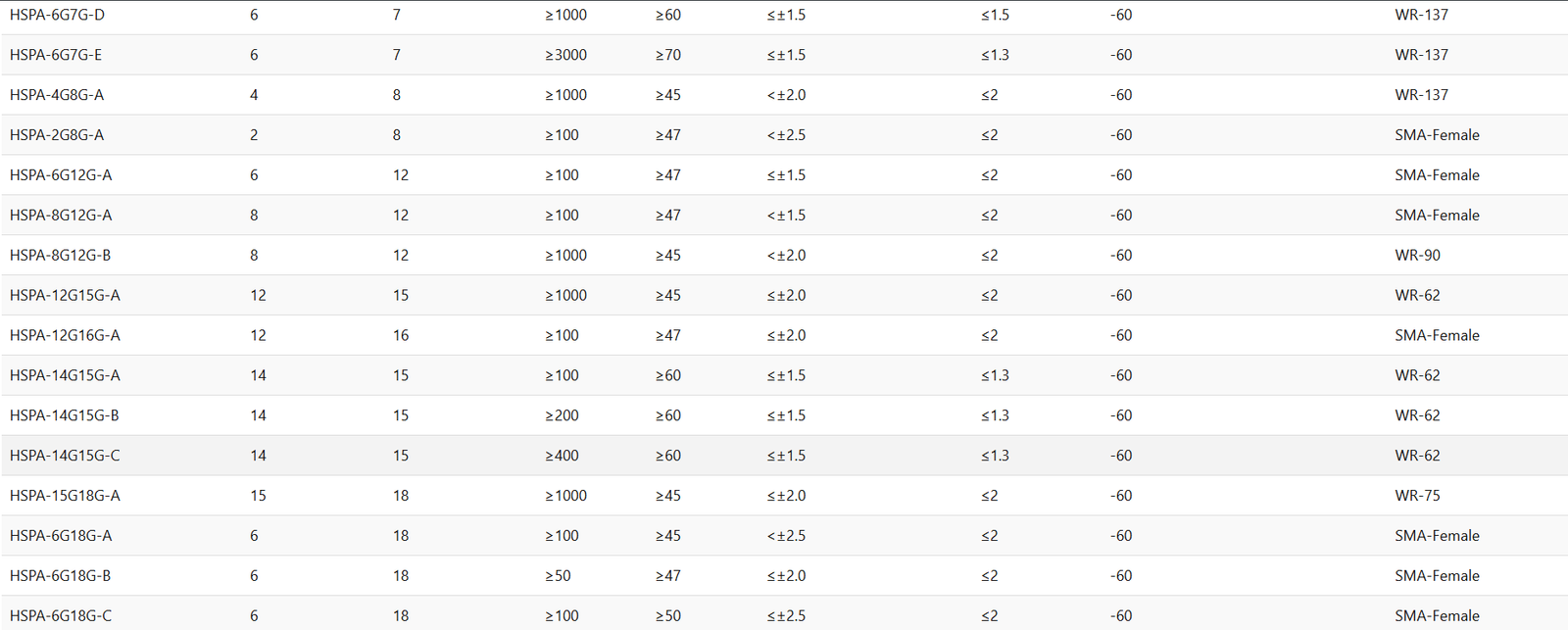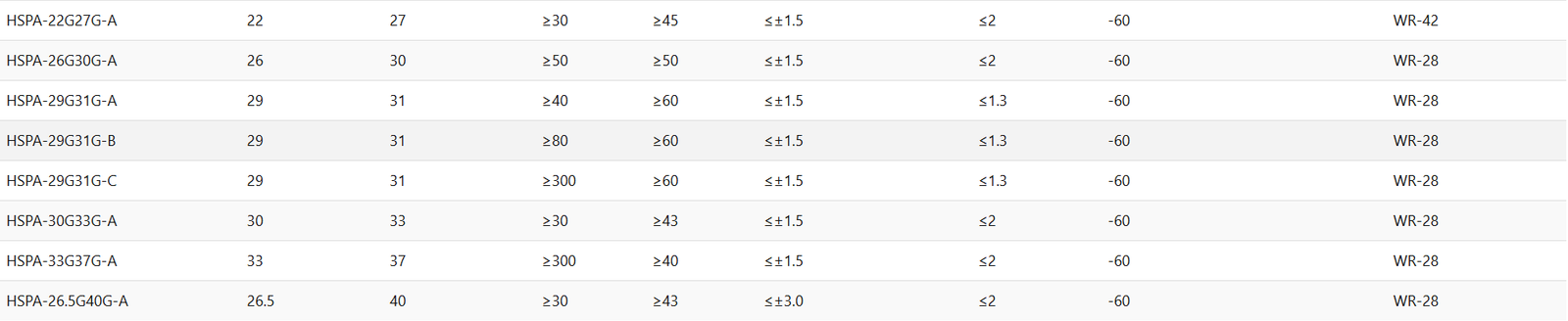 LNA-20-5.7G6.5G-A5.76.520±0.5<1.0>15<1.3<100SMA